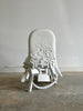The Fused Chair is made of parts from five different broken or unwanted chairs. I painted them white, took them apart, chopped them into smaller and smaller fragments, and re-formed them into a smooth seating surface. The chair represents a gradient of processing -- from distinct parts to an unrecognizable matrix to a homogenous soup. My work largely responds to changes in material and form from traditional wooden chairs to modern industrialized molded and amorphous 'blob' chairs."