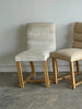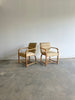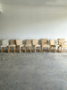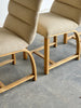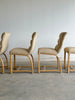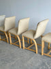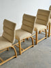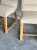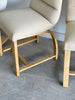 The chairs are made of a bentwood construction that creates a smooth and sleek shape for the seat and back with a wood base with rounded rear legs that give them a sturdy and elegant support. These are made from light wood in a natural finish with off-white boucle upholstery. This set is a perfect example of Gilbert Rohde’s innovative and minimalist style, as well as his mastery of new materials and techniques for his time.